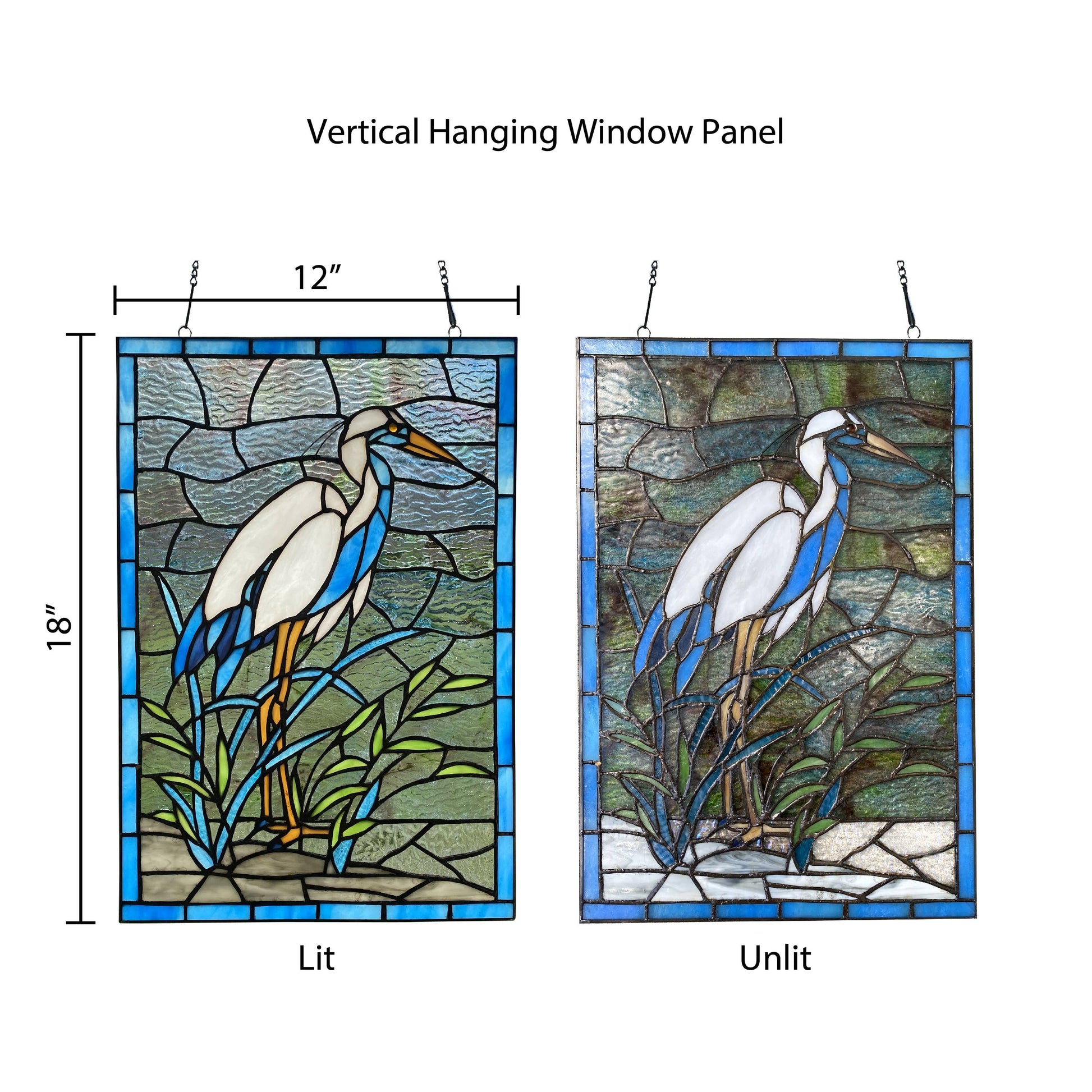 18"H Majestic White & Blue Crane Stained Glass Window Panel