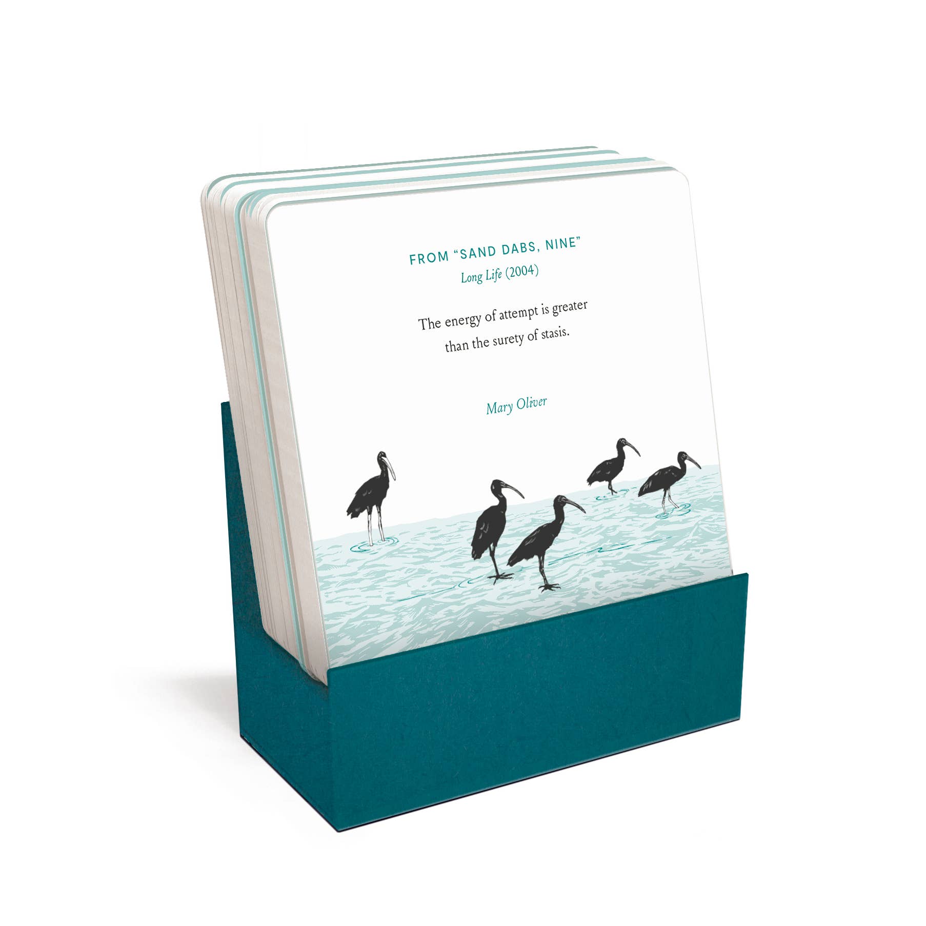 This deck of fifty inspirational quotes, all pulled from Oliver's oeuvre, offer bite-sized pieces of life advice—from simple directives like "as long as you are dancing, you can break the rules," to the entirety of her ode to interpretations of heaven, "Yellow." "Come to the pond," she implores, "and live your life." Pull a card each morning for daily reflection or display a card on the included stand, returning again and again to the simple insight of Oliver's words.