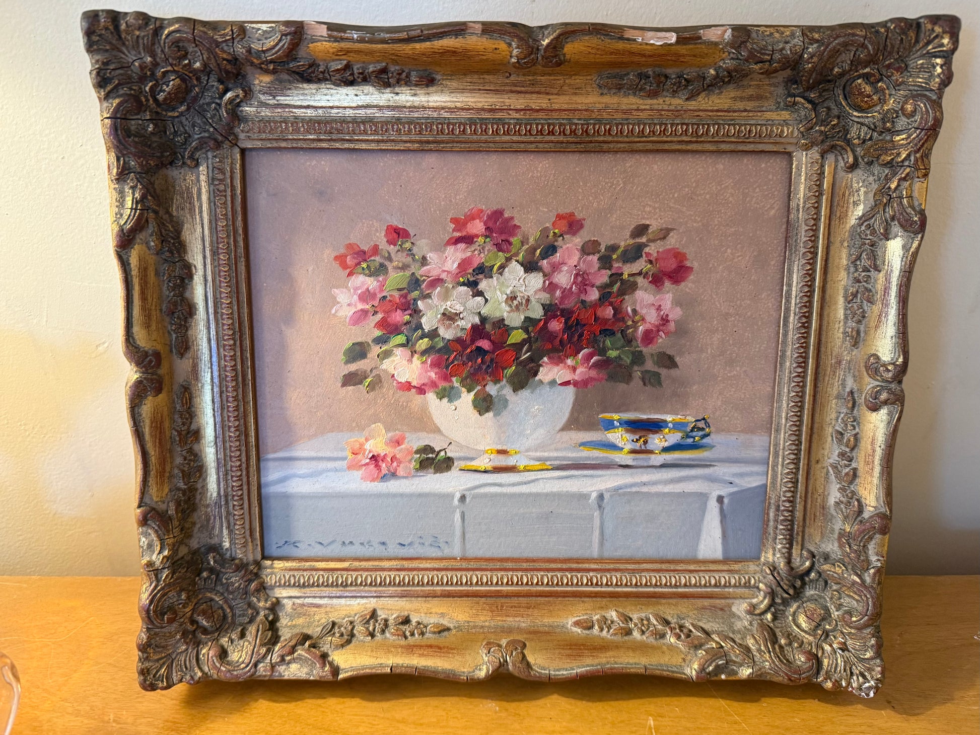 This elegant oil painting on board is a wonderful example of still life of flowers by the artist M. VUKOVIC (MARKO 1892-1973) of Woodstock, NY, formerly part of Yugoslavia. Created in the 20th century, this stunning piece measures 8" x 10".